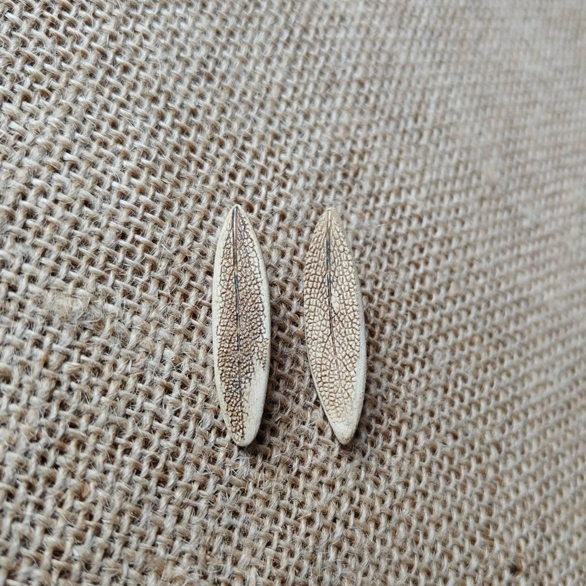 Naturalne odciski listków szałwii powodują, że kolczyki minimalnie różnią się od siebie.