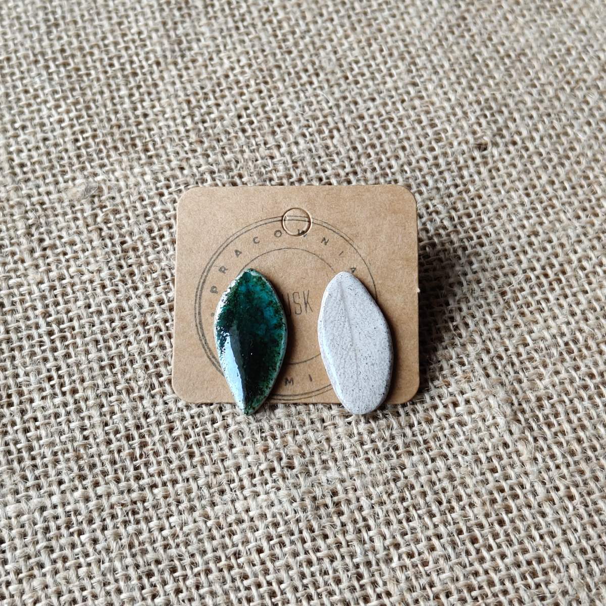 Ręcznie uformowane ceramiczne kolczyki sztyfty.
