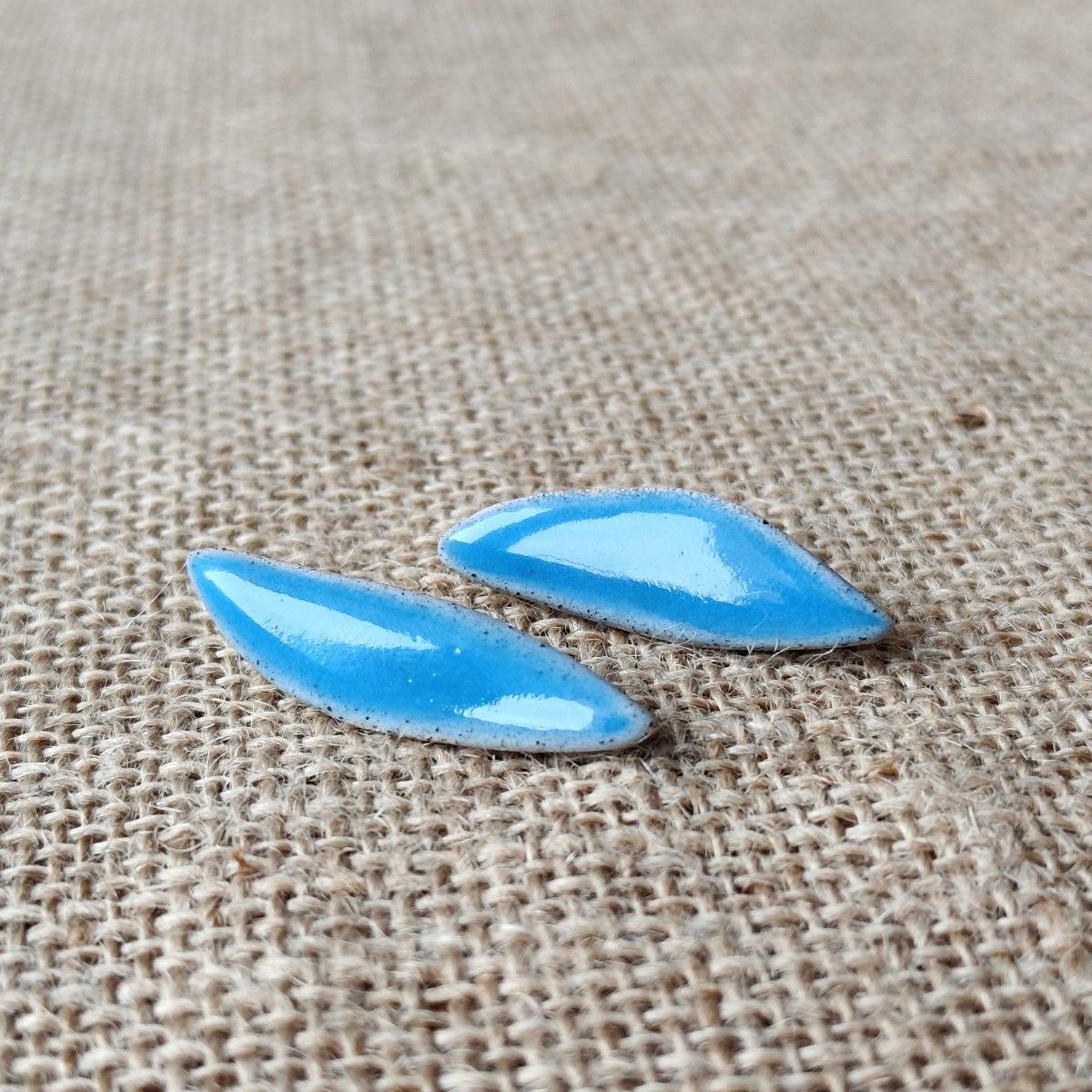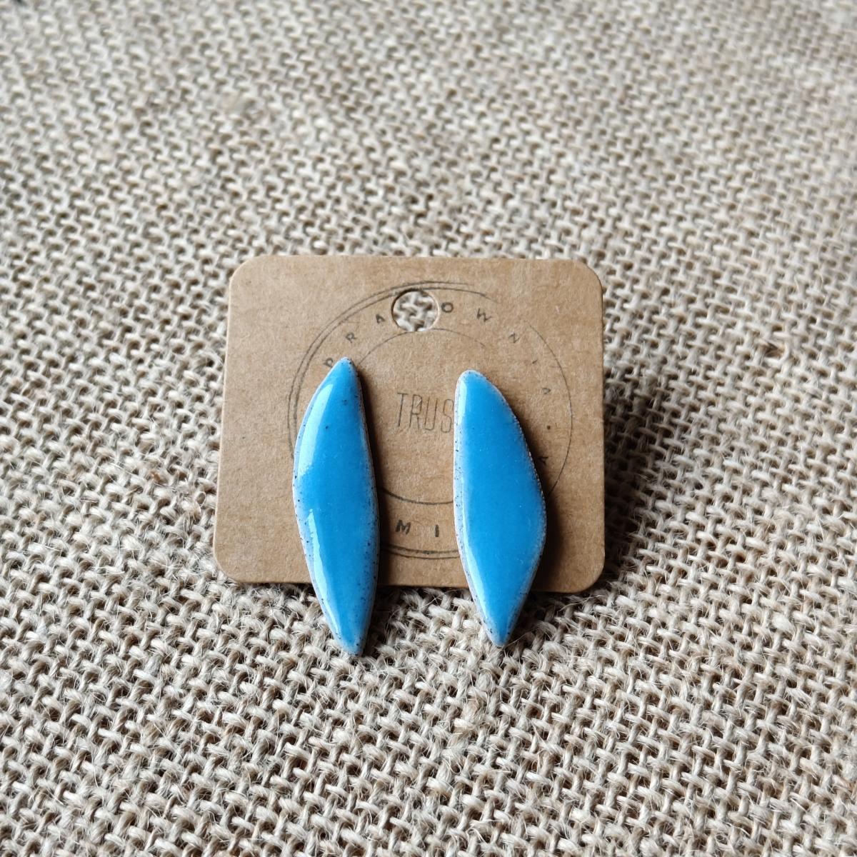 Ręcznie uformowane ceramiczne kolczyki sztyfty o nieregularnym kształcie.