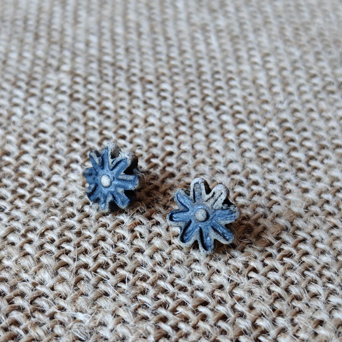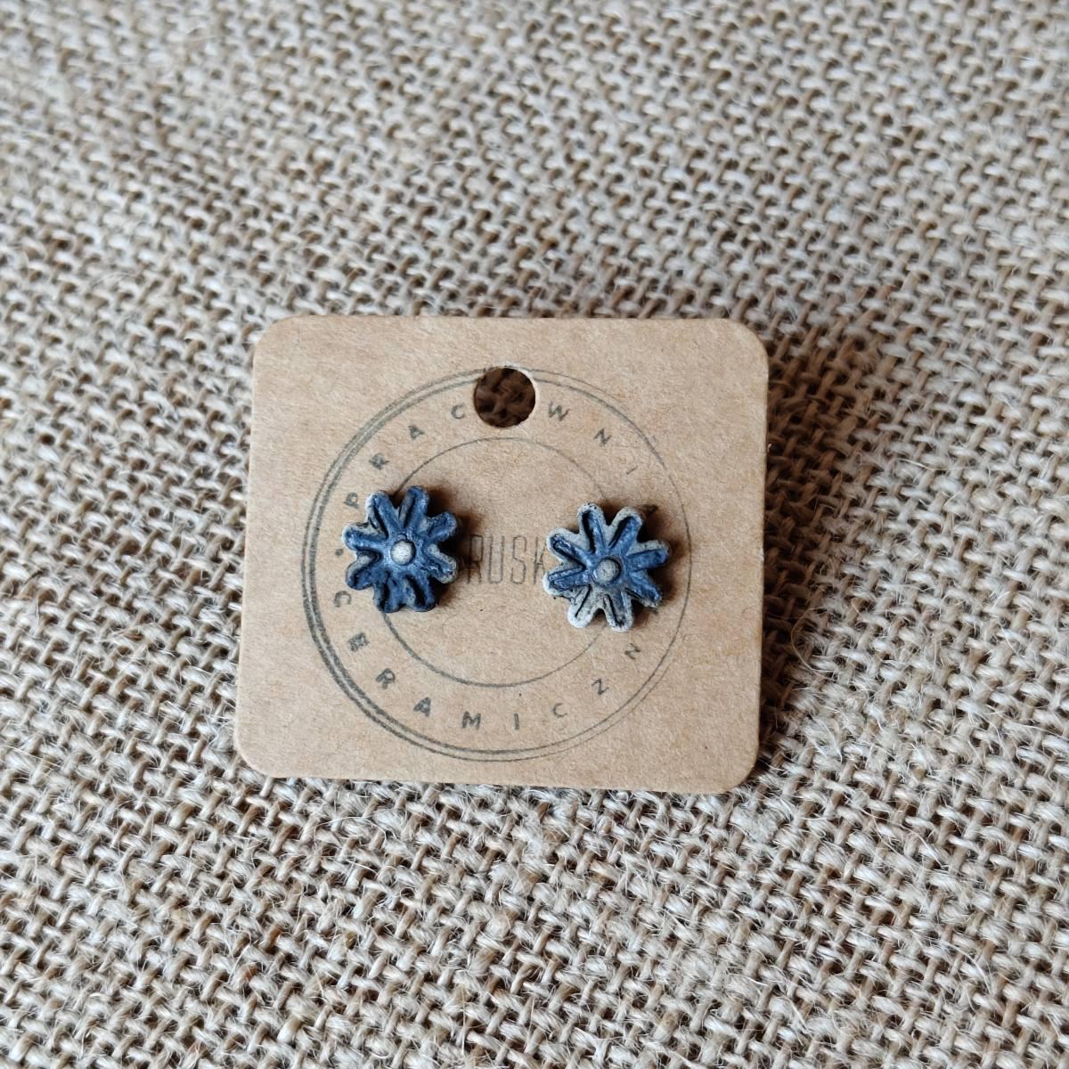 Ręcznie wykonane ceramiczne kolczyki w kształcie kwiatu.