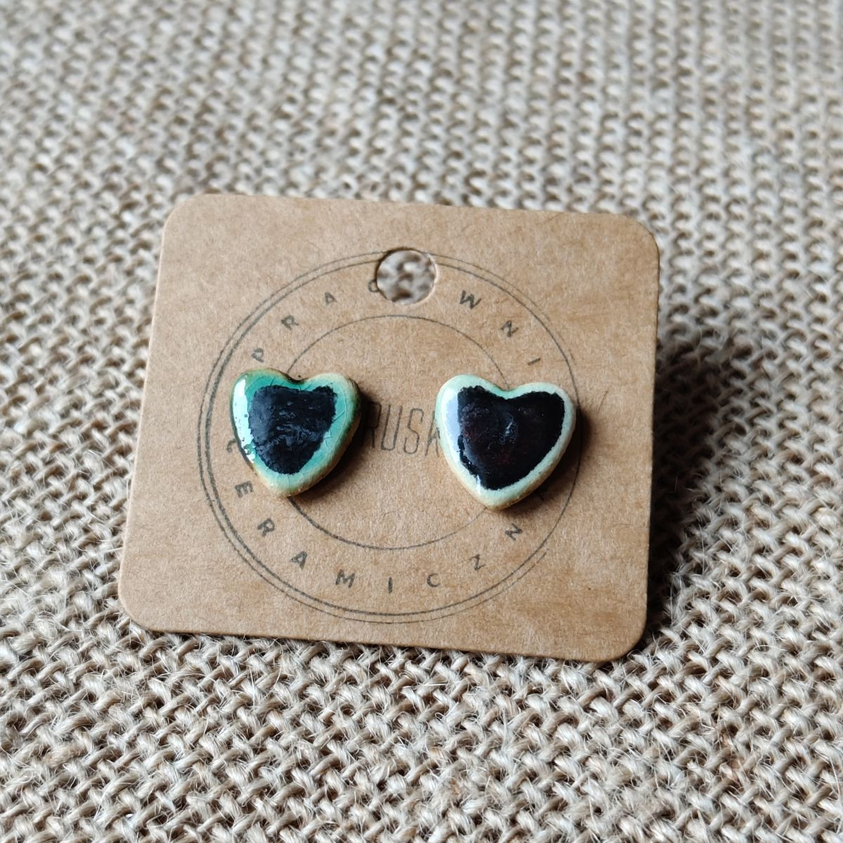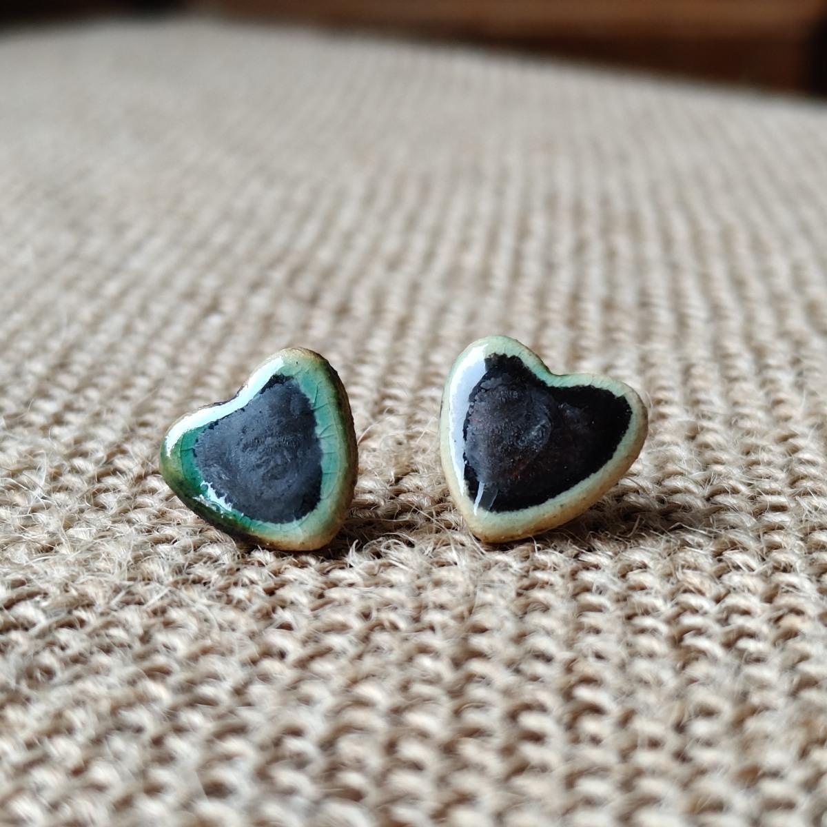 Ręcznie wykonane ceramiczne kolczyki w kształcie serc.